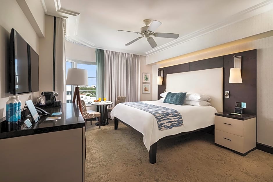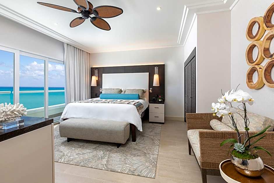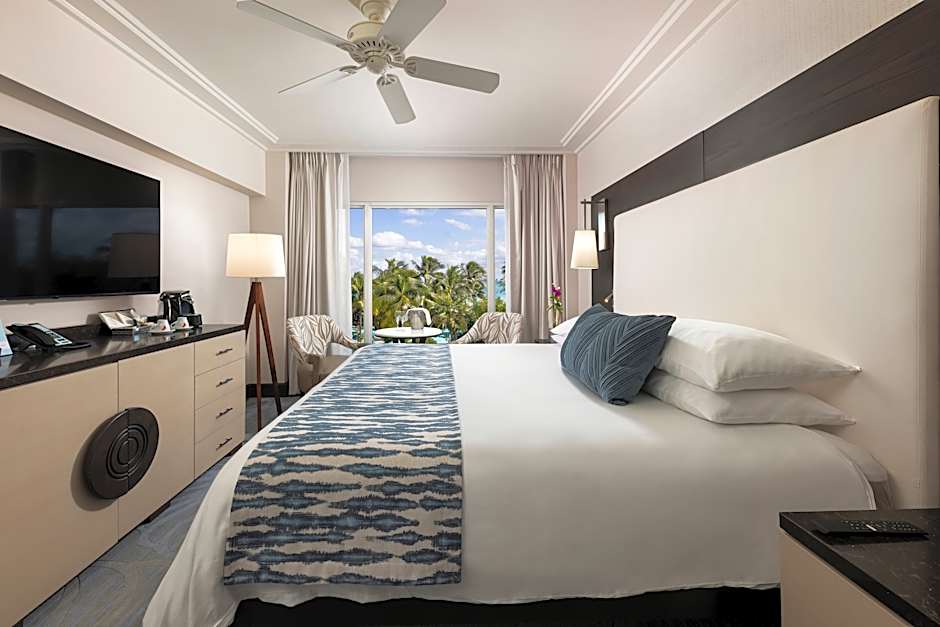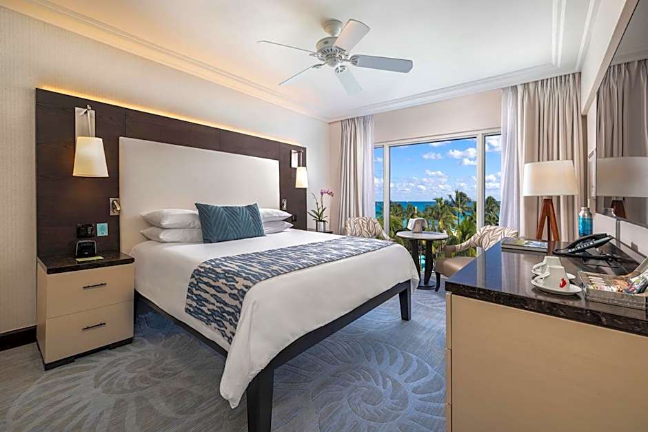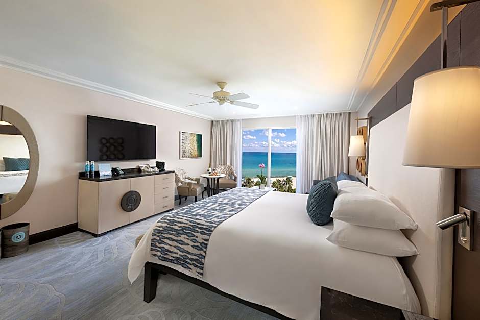 This oceanfront room features floor-to-ceiling windows and a 48-inch flat-screen TV.