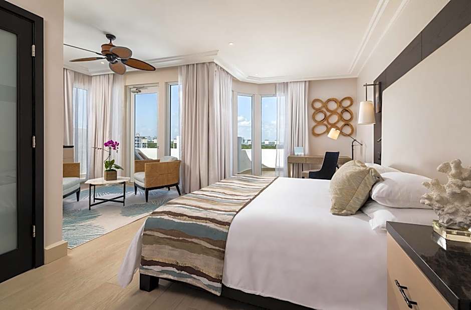 This is the largest room and it offers floor-to-ceiling windows with ocean or garden views. A sofa bed is provided, as is a 48-inch flat-screen TV.