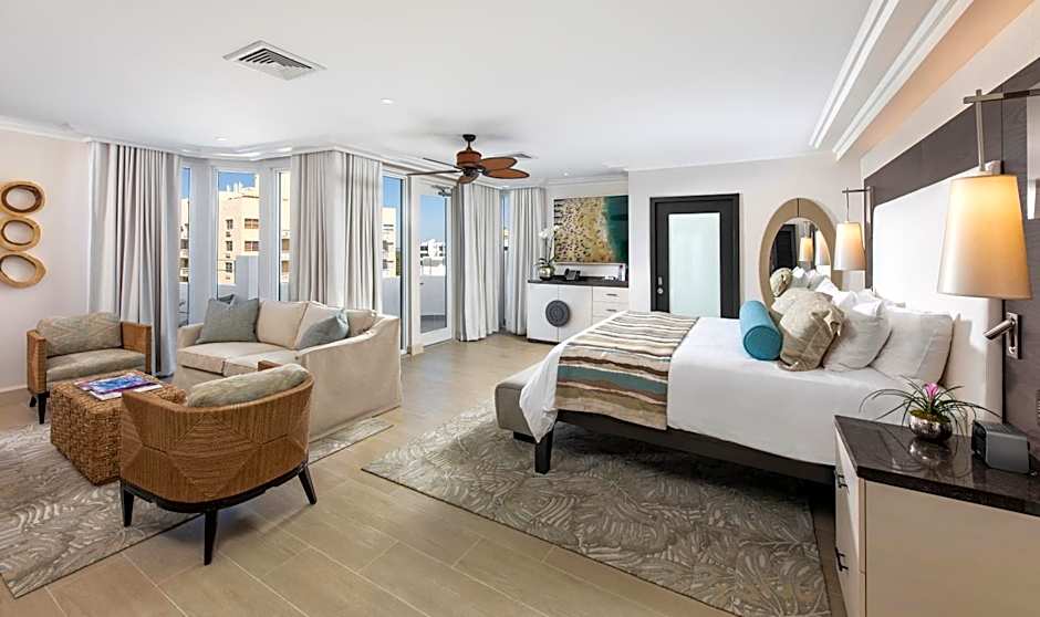 This spacious suite consists of 1 living room, 1 separate bedroom and 1 bathroom with a shower and free toiletries. The air-conditioned suite provides a flat-screen TV with streaming services, a coffee machine, a seating area, a dining area as well as sea views. The unit offers 2 beds.