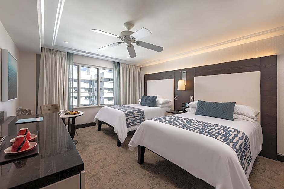 This room features a 48-inch flat-screen TV as well as views of the Miami skyline.