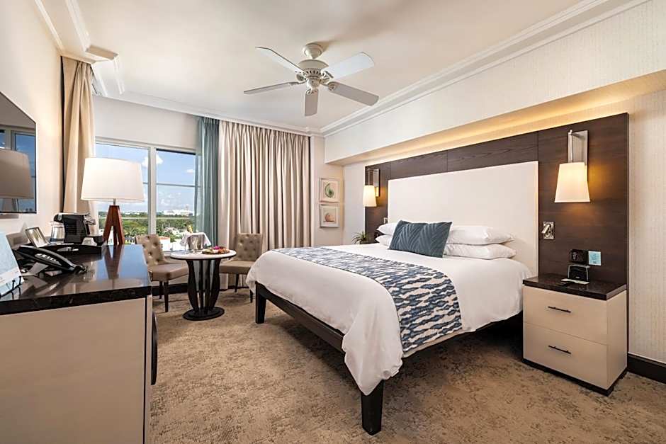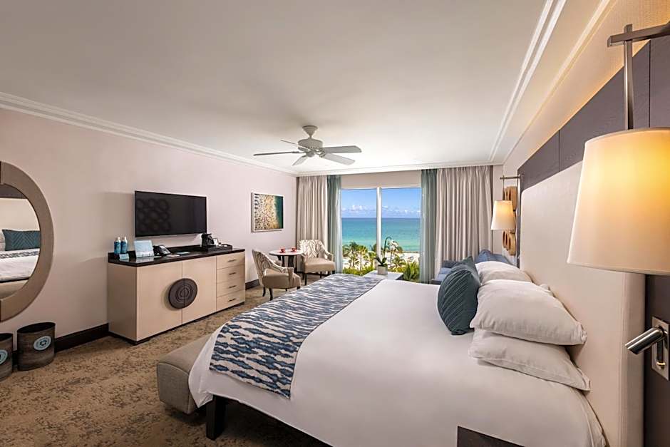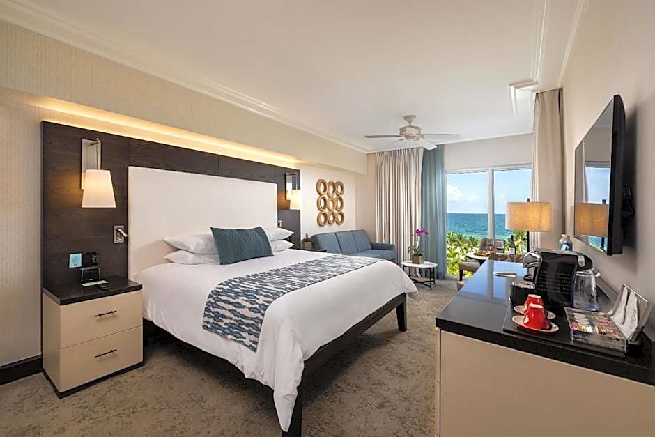 This oceanfront room features floor-to-ceiling windows and a 48-inch flat-screen TV.